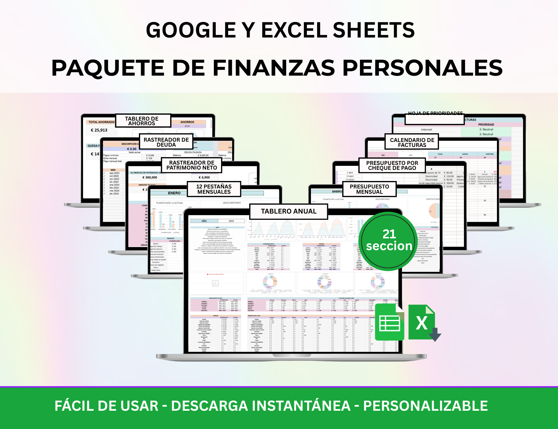 Este es el planificador de finanzas personales definitivo que jamás necesitarás. Es un planificador de presupuesto completo y sencillo, con paneles (dashboards) integrados. Esta plantilla ha hecho que mi camino financiero sea mucho más fácil y divertido de llevar. La creé con mucho amor y el máximo cuidado, ¡y espero que a ti también te encante!
