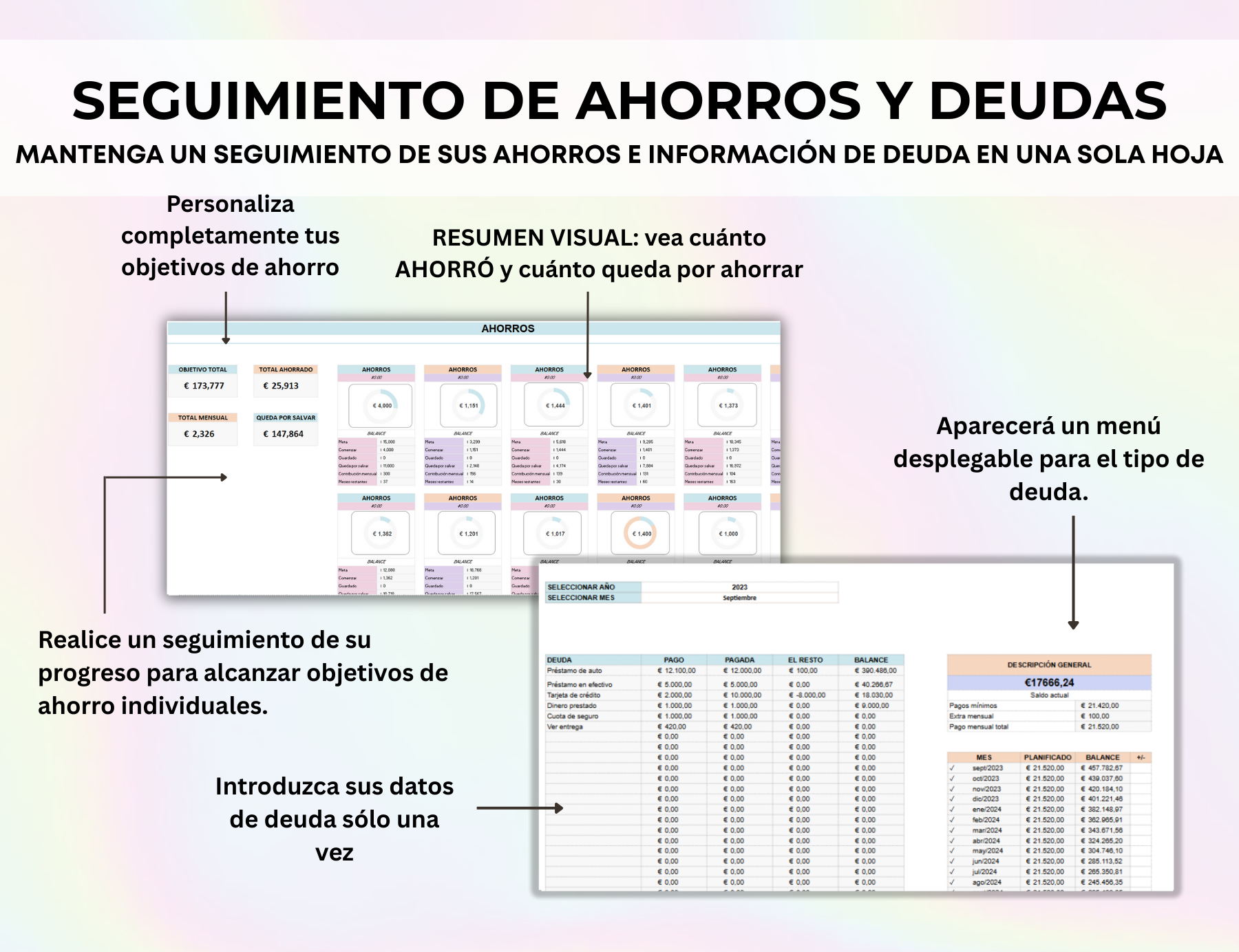 • PANEL Y CALCULADORA DE DEUDAS – Herramienta potente para supervisar y calcular deudas con distintas estrategias de pago